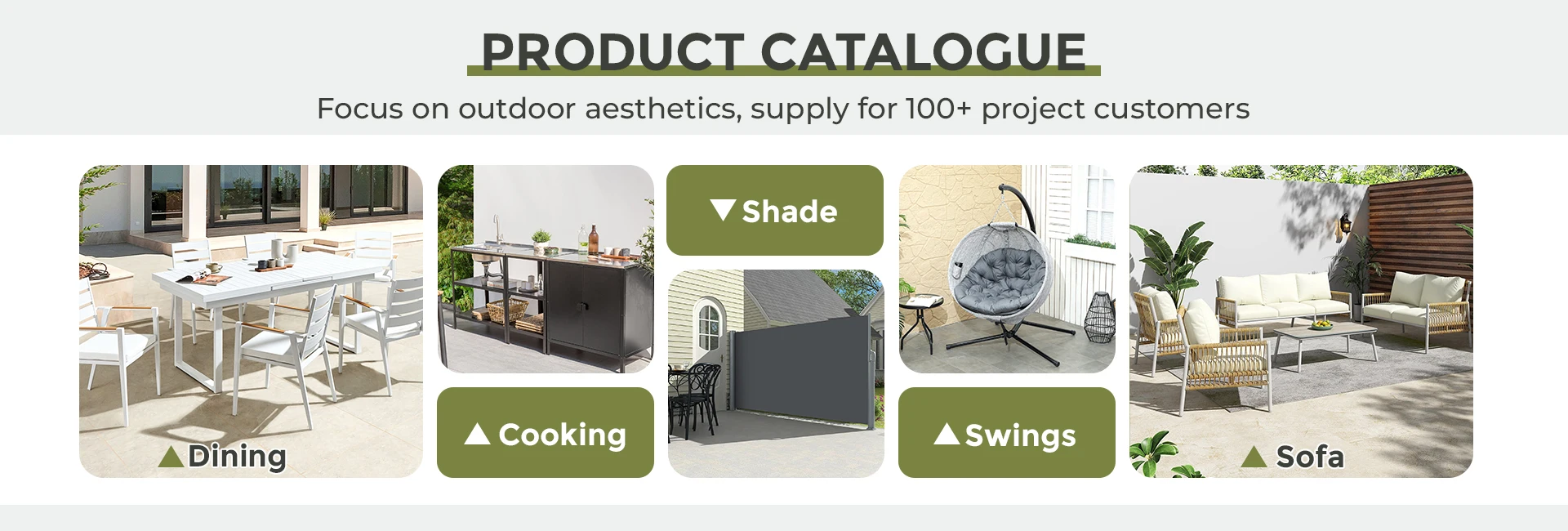 מוצרים עיקרייםכיסא חוף, ספה גן, שולחן בחוץ, כורסת שמש, ריהוט חיצוני אחר